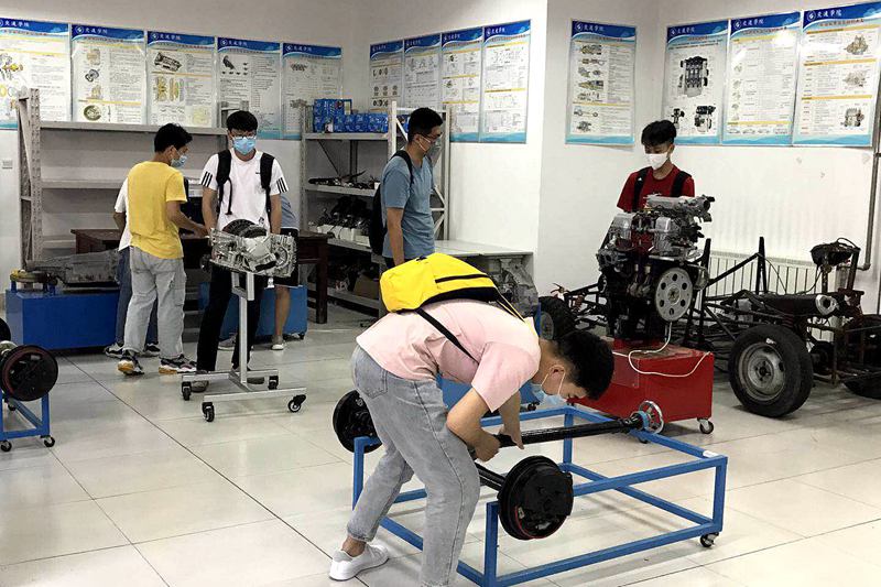 2017级车辆工程专业在王芳老师课上在做汽车构造实验(摄影/王芳)