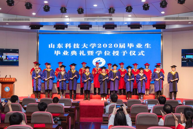 6月24日,BB贝博艾弗森官网在逸夫讲堂举行2020届毕业生毕业典礼暨学位授予仪式,送别一万余名毕业生。受疫情影响,学校在严格落实疫情防控要求前提下,100多名毕业生代表在现场参加典礼仪式,典礼为青岛、泰安、济南三地视频典礼,更多师生通过网络直播方式参加“云典礼”。