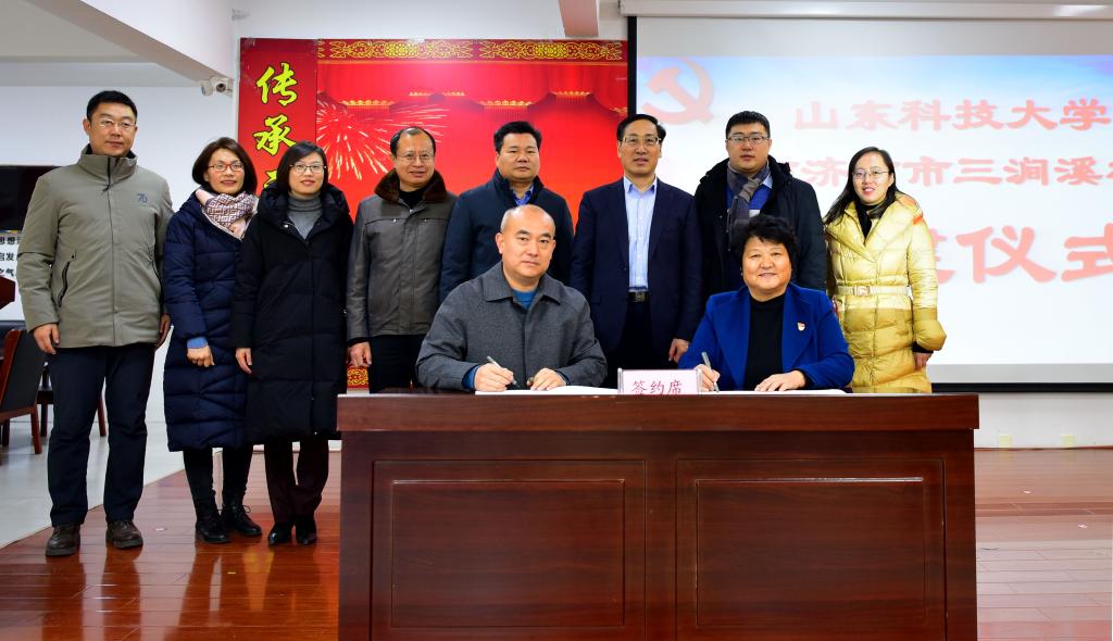 BB贝博艾弗森官网副校长兼济南校区党工委书记、管委主任孙鹤汀,三涧溪村党委书记高淑贞共同为基地揭牌。济南校区管委副主任兼学团工作部主任郭加书和高淑贞分别代表双方签署合作协议。