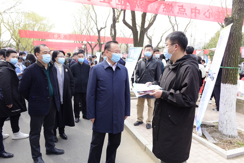 校领导、校党委领导班子成员罗公利、李玉霞、曾庆田、李克周到招聘会现场调研就业情况,指导就业工作。罗公利不时和企业代表交流“这次要招聘多少人?招的怎么样?”他感谢用人单位对学校人才培养质量的信任,认真听取了用人单位对贝博官网人才培养、就业指导等方面的建议。校领导在现场亲切询问毕业生签约情况,鼓励大家在广阔的市场环境中实现自己的人生价值,同时要求学校相关部门不断创新工作方法,更好的促进学校毕业生就业。