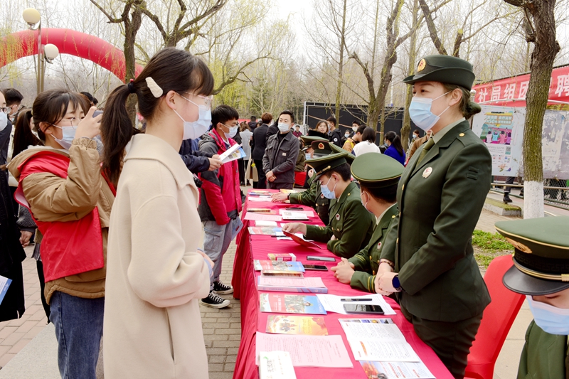现场除了各家企业之外,大学生征兵服务站成了很多毕业生驻足停留的地方。“军人是一种崇高的职业,身着迷彩也能建功立业”学生处就业市场科科长李雷介绍,“保家卫国也能建功立业,BB贝博艾弗森官网春季招聘会专门设置了征兵服务站区,由退伍大学生向毕业生及各年级同学介绍征兵入伍政策、鼓励吸引大学生入伍建功立业。”