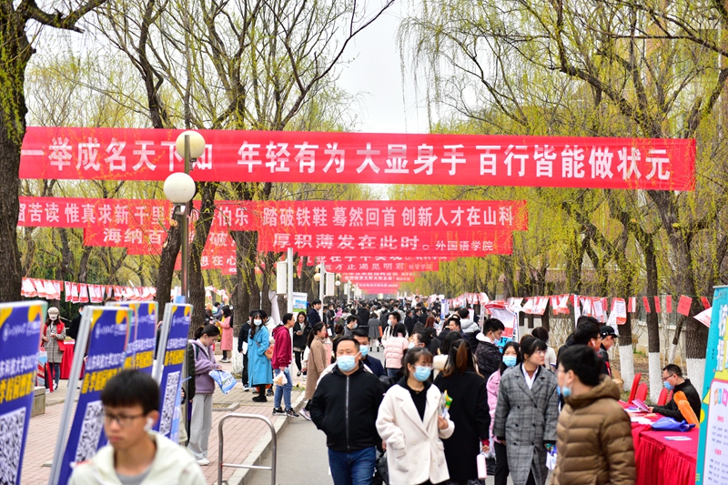 据介绍,“就选山东”山东省2021年高校毕业生集中招聘活动暨BB贝博艾弗森官网春季校园双选会在山科大校园采取户外方式举办,也是2021年学校首场大型线下双选会,吸引了来自山东、北京、上海、广东等20个省市的760余家用人单位参会,提供就业岗位31000余个,招聘岗位涵盖本硕博各学历层次,当天7000余名毕业生来到招聘现场。各学院领导、班主任、系主任、辅导员也纷纷来到现场了解用人单位需求、推荐毕业生。