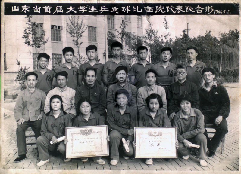 山东省首届大学生乒乓球比赛院代表队合影,摄于1966年