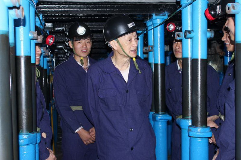 图为宋振骐院士在矿井中指导生产。