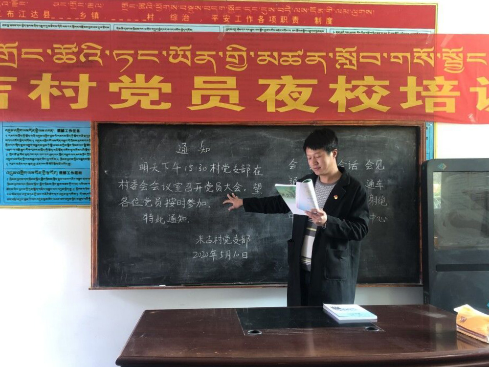在他的提议下,村“两委”一致同意村党支部书记平措次仁担任起夜校校长,在组织带领村党员干部开展“四讲四爱”群众教育实践活动和落实“三会一课”制度的同时,加强对夜校的规范管理,鼓励党员在脱贫攻坚战斗中做标杆、树榜样,同时米吉村村干部、后备干部等11人全部通过了2020年“万名村(居)干部文化素质提升工程”测试。