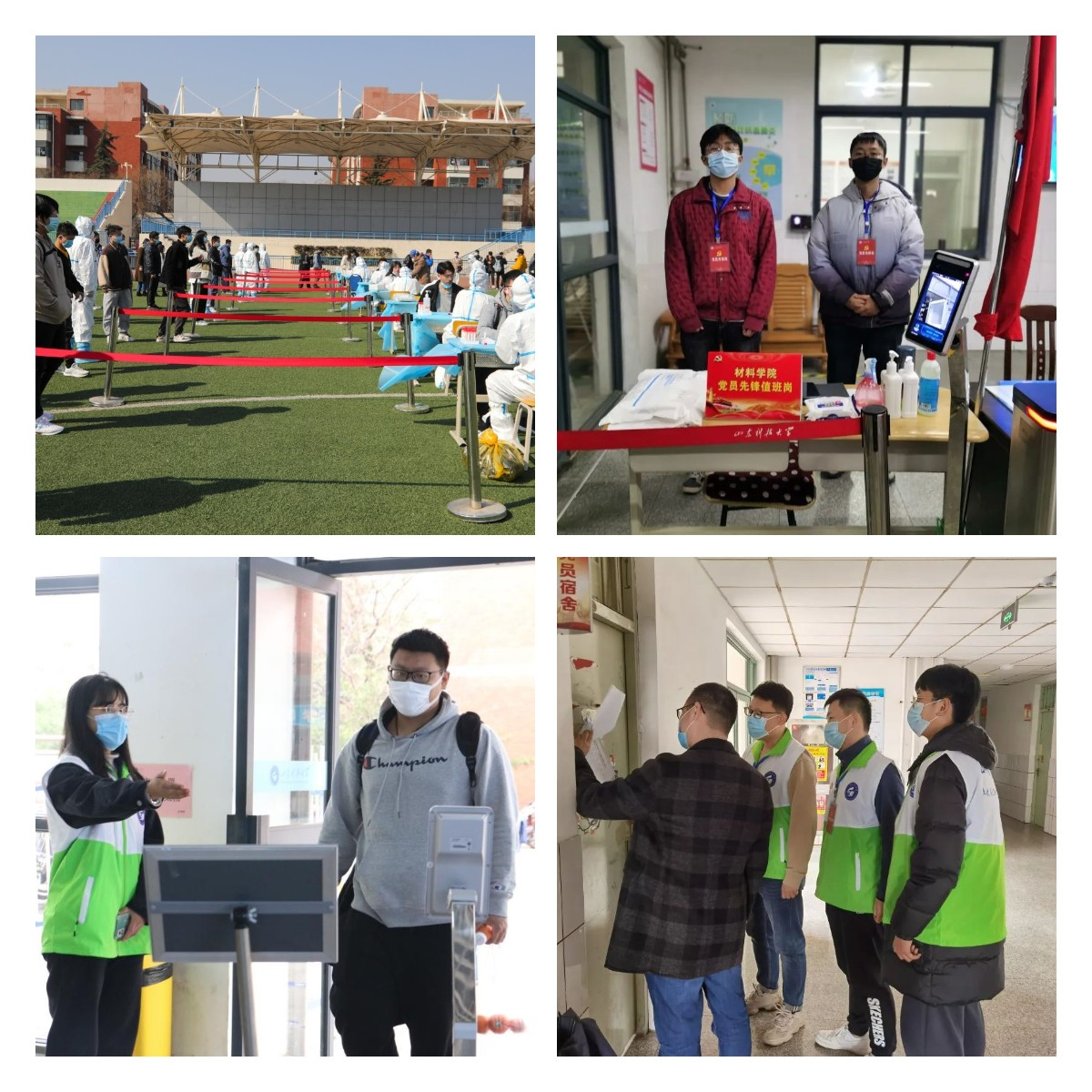 一名党员就是一面旗帜。“我们也要动起来!”学生党员也在第一时间有了行动,他们在核酸检测现场、在公寓值班处、在楼层巡查……学生公寓亮出了一个个红色先锋岗的牌子,到处可见学生党员忙碌的身影。