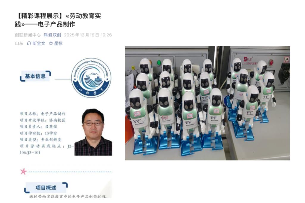 2.强化典型示范引领:学校深入挖掘并推广劳动育人先进经验与典型事迹,20项实践成果入选《山东省高校劳动教育实践项目典型案例汇编》,学校主编的《新时代大学生劳动教育》被推荐参加省遴选的普通高等教育本科国家级规划教材;校内评选劳动教育“精彩课程”20项、劳动实践推广项目11项,形成了从省级到校级、从项目到课程多维度可示范、可辐射的品牌集群。