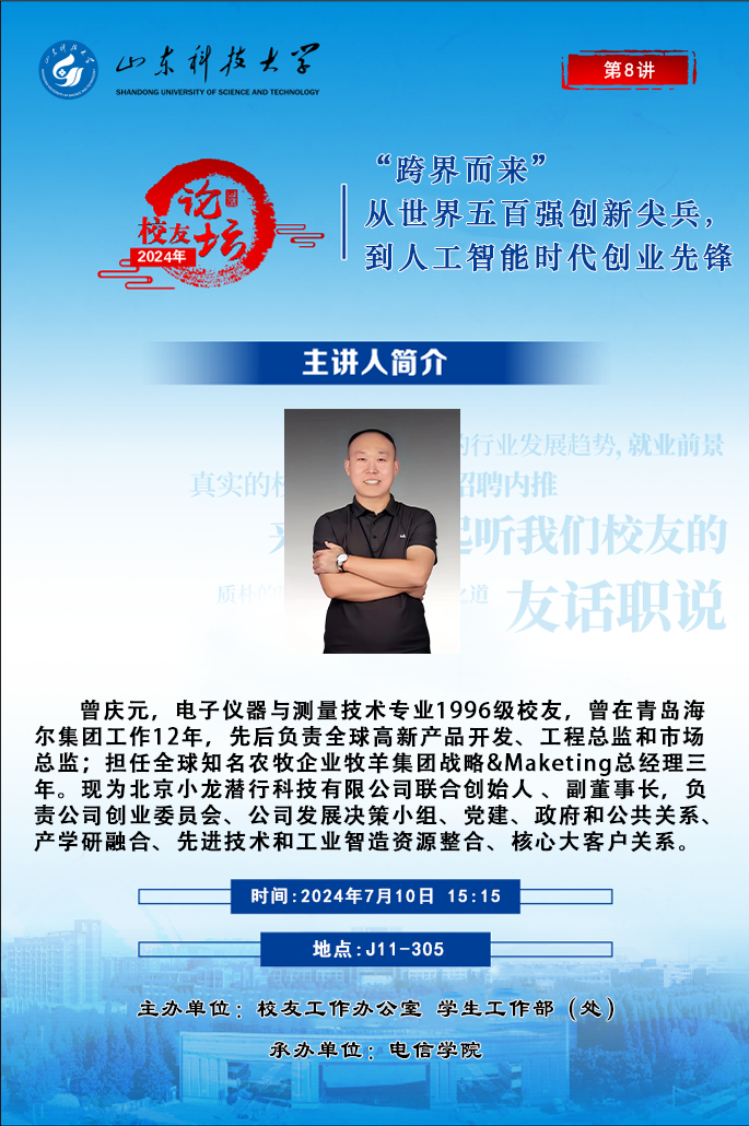 “校友论坛”2024年第8讲:“跨界而来”从世界五百强创新尖兵,到人工智能时代创业先锋