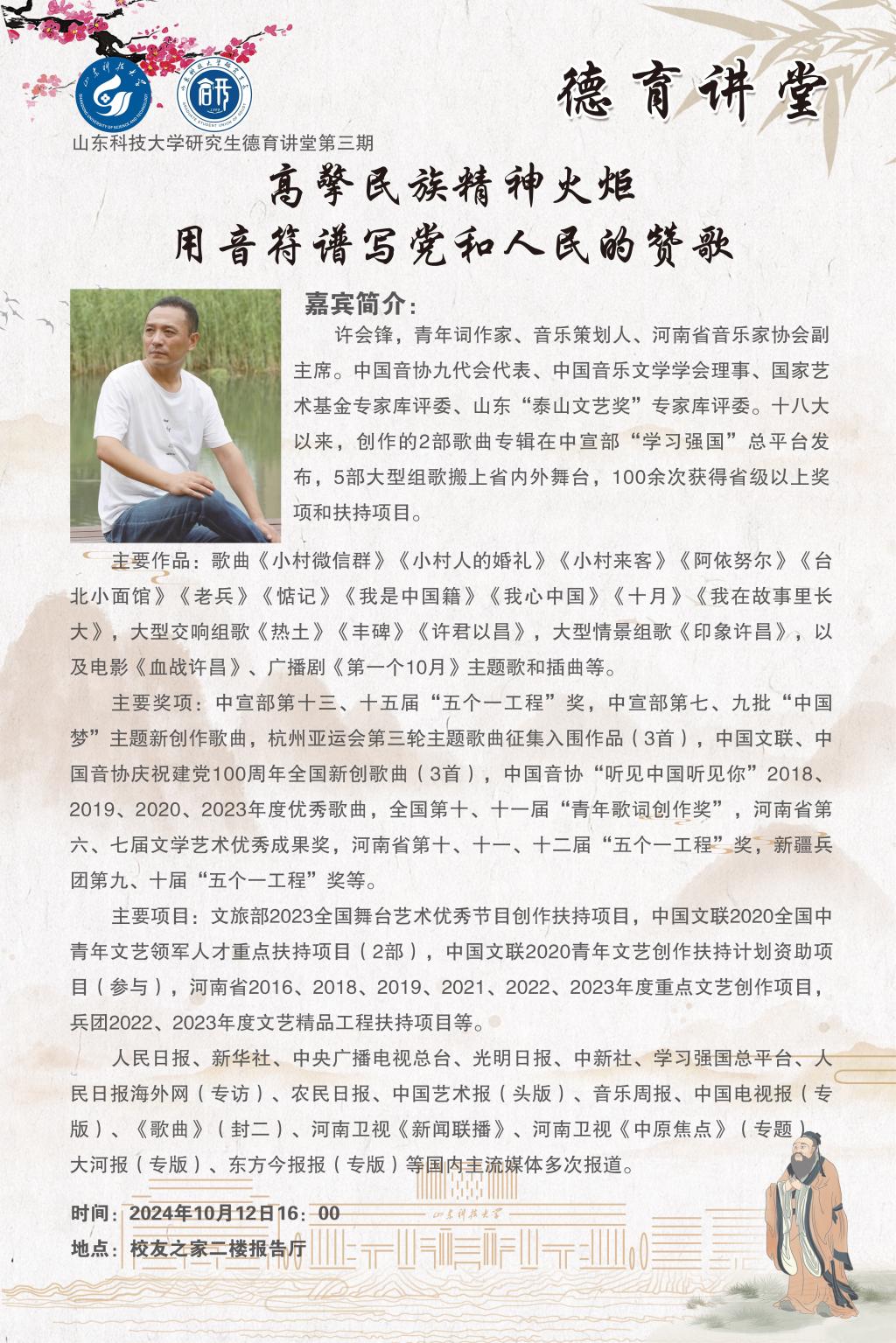 研究生“德育讲堂”第三期:高擎民族精神火炬,用音符谱写党和人民的赞歌
