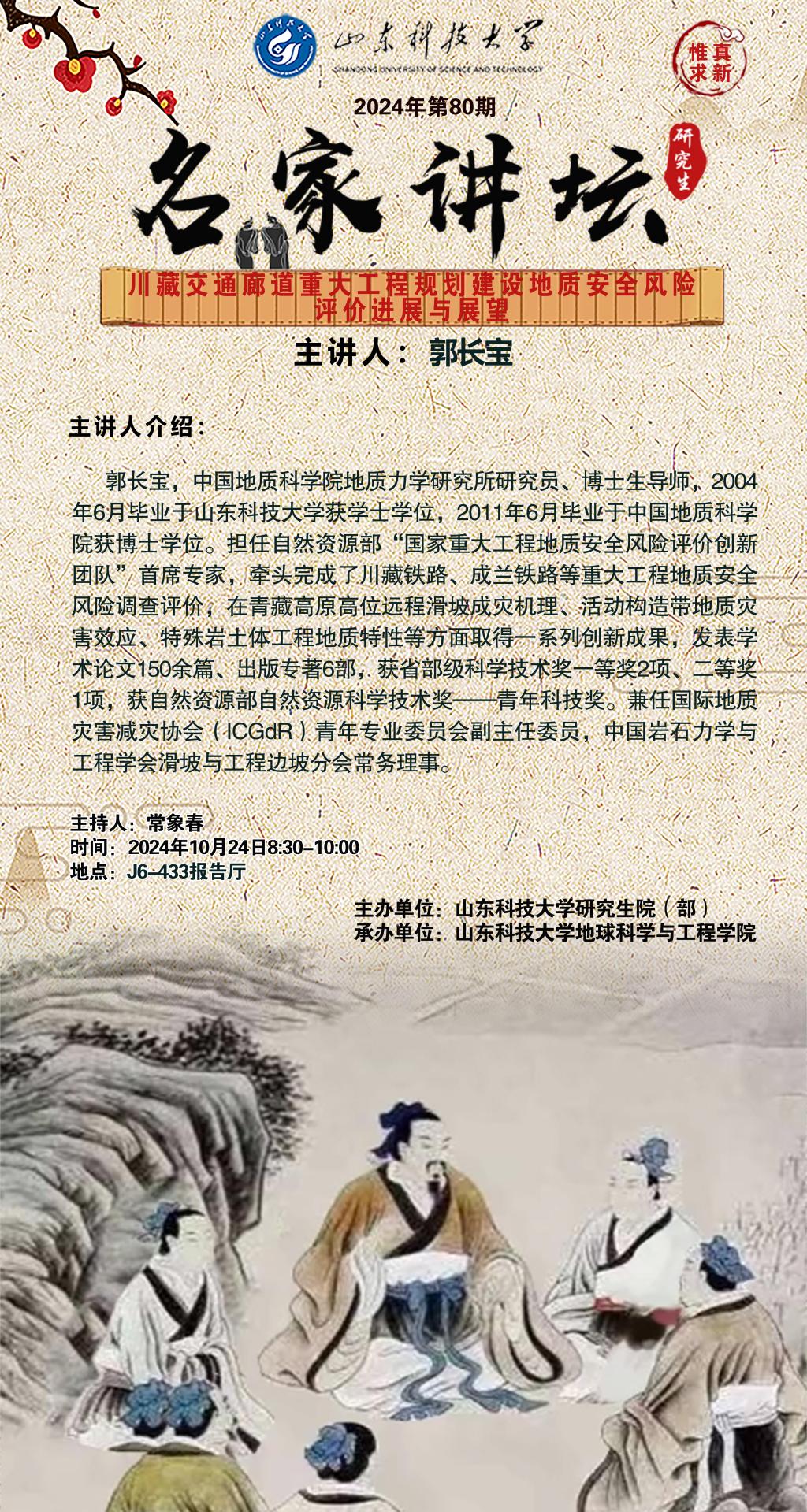 “名家讲坛”2024年第80期:川藏交通廊道重大工程规划建设地质安全风险评价进展与展望(总974期)
