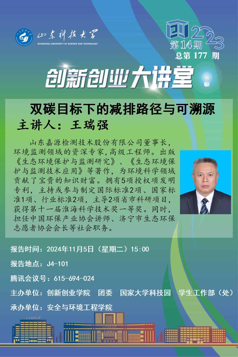 创新创业大讲堂2024年第14期:“双碳”目标下的减排路径和可溯源