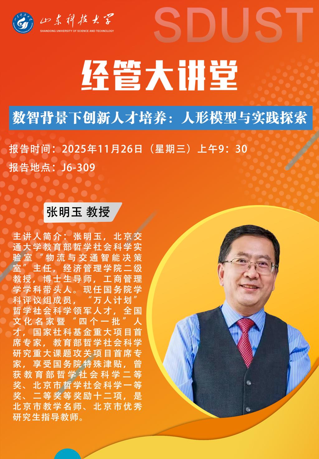经管大讲堂:数智背景下创新人才培养——人形模型与实践探索
