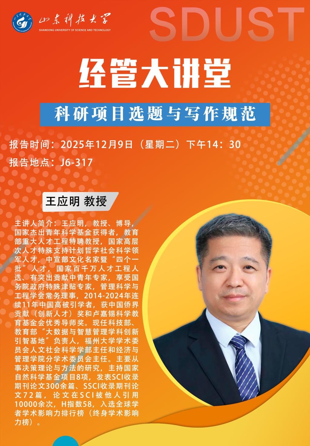 经管大讲堂:科研项目选题与写作规范