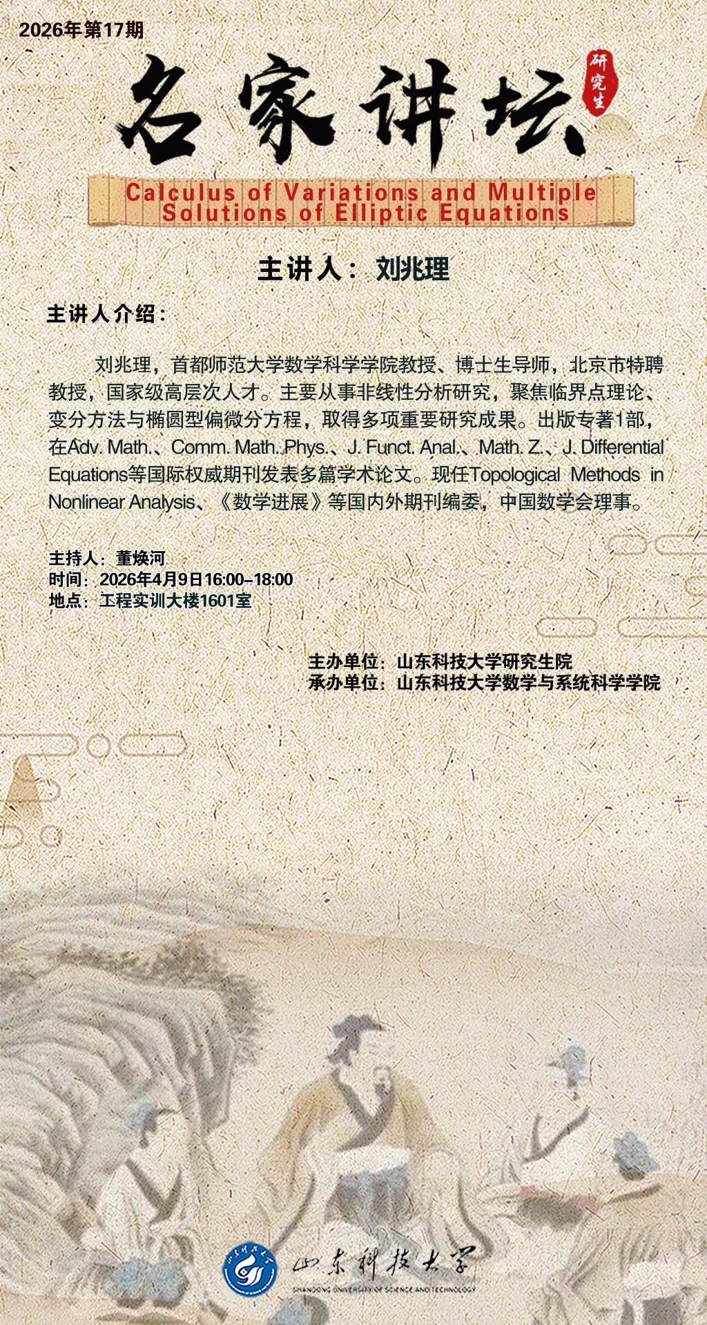“名家讲坛”2026年第17期:Calculus of Variations and Multiple Solutions of Elliptic Equations(总1119期)