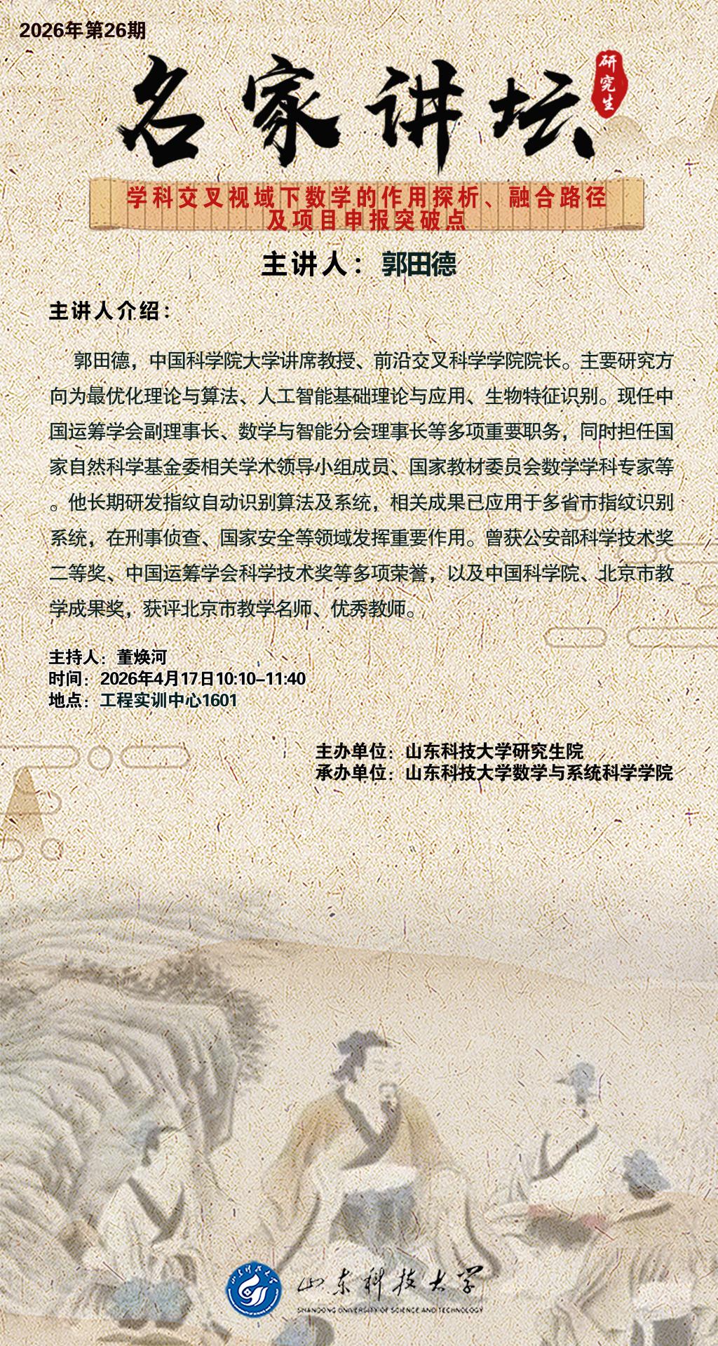 “名家讲坛”2026年第26期:学科交叉视域下数学的作用探析、融合路径及项目申报突破点(总1128期)