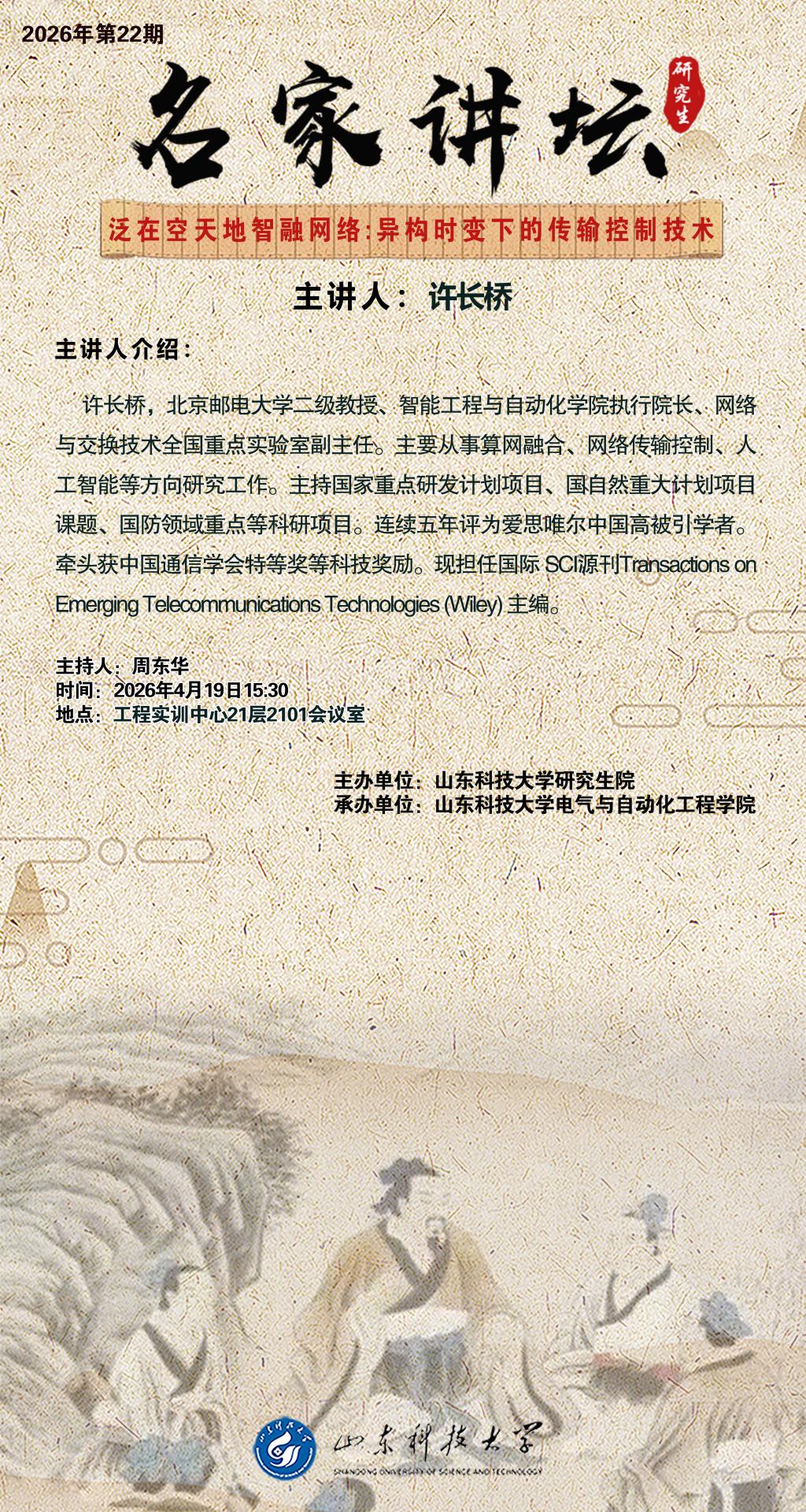 “名家讲坛”2026年第22期:泛在空天地智融网络-异构时变下的传输控制技术(总1124期)